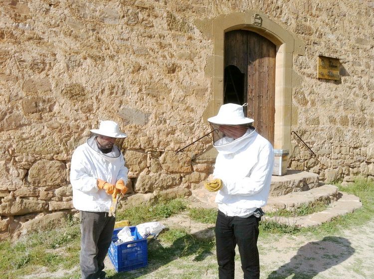 El día siguiente llegaron a Pallerols bien equipados con los trajes de protección correspondientes, una escalera, la caja para poner las abejas, etc.